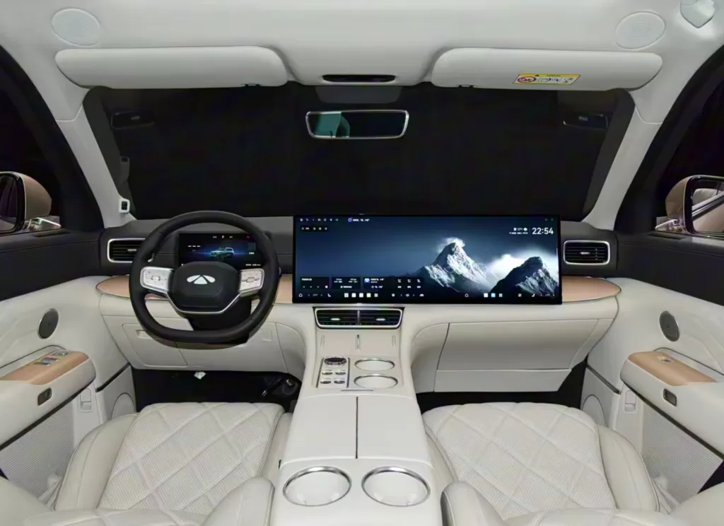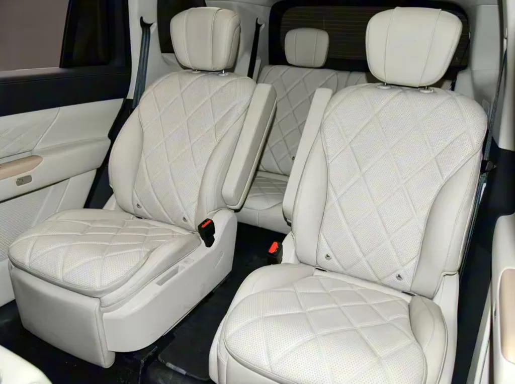 The 2+2+2 six-seat layout includes a 30-inch 6K unified screen powered by Qualcomm 8255, supporting Huawei HiCar, CarPlay, CarLink, and AI voice assistant. Top trims offer six-zone voice recognition, including the third row.