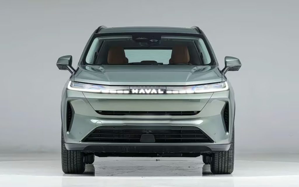 A full-width light bar integrates with illuminated “HAVAL” lettering, enhancing its tech-forward aesthetic and night-time visibility.